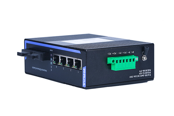 百兆1光4电口非网管工业级以太网交换机,是我公司自主研发的一款专门针对工业控制领域的工业环网交换机产品,该产品可以提供稳定可靠的以太网传输, 具有高质量的设计和可靠性。可为用户提供并实现高效带宽、可靠光纤网络解决方案的以太网数据交换、汇聚和远程光传输。该产品具有体积小、无风扇、功耗低、可靠性高、稳定性好、维护方便等特点。工业级以太网交换机产品采用成熟的技术和开放的网络标准,适应低温高温,抗电磁干扰强,防盐雾,抗震防抖,配备冗余双DC电源,可为需要保持始终连接的关键设备提供冗余机制。它还可以在标准工作温度范围-40至75°C下工作。工业交换机支持DIN导轨或壁装式安装,具有IP40防护等级,是恶劣环境的完美选择,如工业网络、智能交通系统(ITS),也适用于许多军事和公用事业市场应用,环境条件超过商业产品规格。