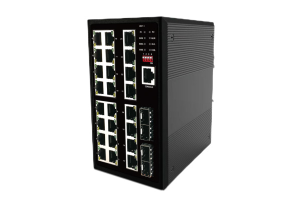 千兆4光24电网管工业级以太网交换机,是我公司自主研发的一款专门针对工业控制领域的工业环网交换机产品,该产品支持国际标准IEEE 802.3D/W/S 标准的STP/RSTP/MSTP 协议,以及丰富的ERPS网管功能,可以提供的稳定可靠的以太网传输, 具有高质量的设计和可靠性。可为用户提供并实现高效带宽、可靠光纤网络解决方案的以太网数据交换、汇聚和远程光传输。该产品具有体积小、无风扇、功耗低、可靠性高、稳定性好、维护方便等特点。工业级以太网交换机产品采用成熟的技术和开放的网络标准,适应低温高温,抗电磁干扰强,防盐雾,抗震防抖,配备冗余双DC电源,可为需要保持始终连接的关键设备提供冗余机制。它还可以在标准工作温度范围-40至75°C下工作。工业交换机支持DIN导轨或壁装式安装,具有IP40防护等级,是恶劣环境的完美选择,如工业网络、智能交通系统(ITS),也适用于许多军事和公用事业市场应用,环境条件超过商业产品规格。